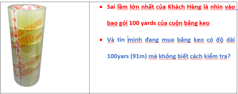 Băng Keo trên thị trường 99% đều đóng gói 100yards, nhưng ko đủ yards