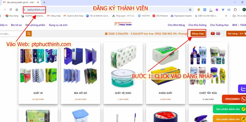 Bước 1: vào webstie pthucthinh: bấm vào đăng nhập như hình bên dưới