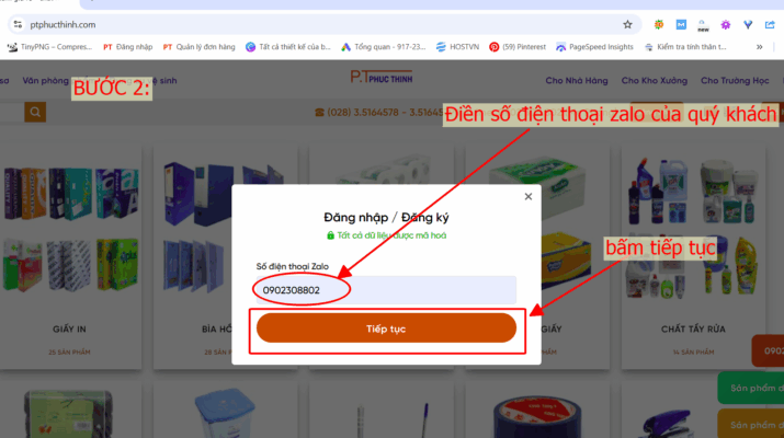 Bước 2: Điền số điện thoại có zalo như hình bên dưới
