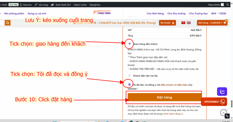 BƯỚC 10: Click vào đặt hàng (xem hình bên dưới)