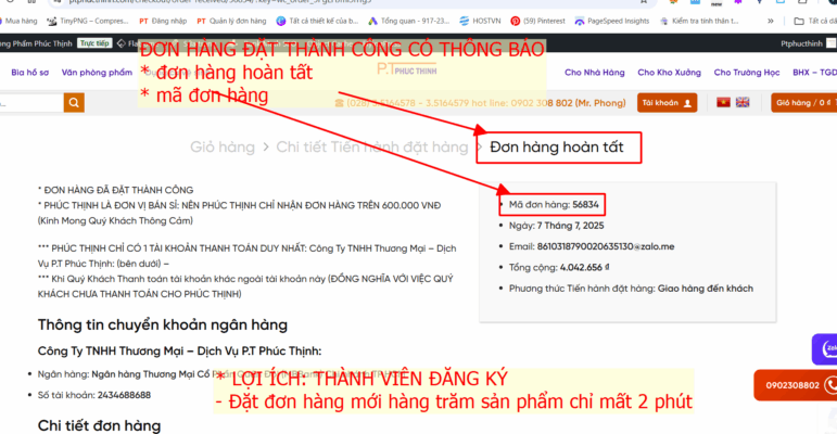 Lưu ý: Để đảm bảo an toàn và thuận tiện, Phúc Thịnh chỉ nhận thanh toán qua ngân hàng, không nhận tiền mặt. Mong Quý khách thông cảm.