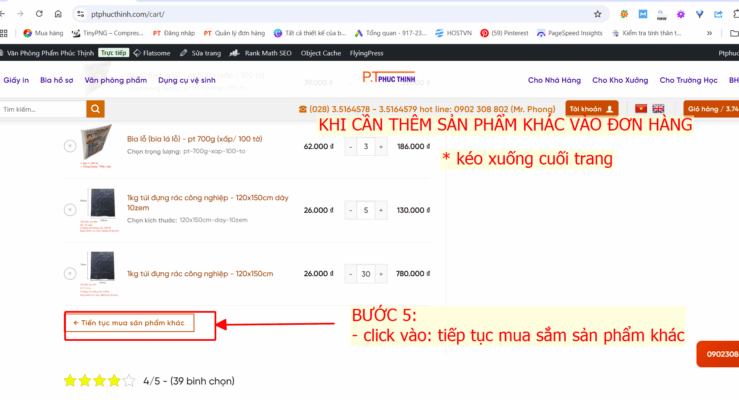 BƯỚC 7: Cách thêm sản phẩm khác vào giỏ hàng (xem hình bên dưới)