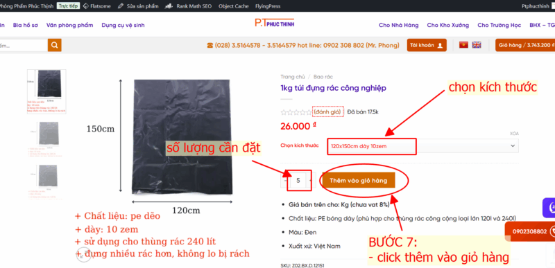 Bước 4: chọn số lượng cần đặt, sau đó click thêm vào giỏ hàng
