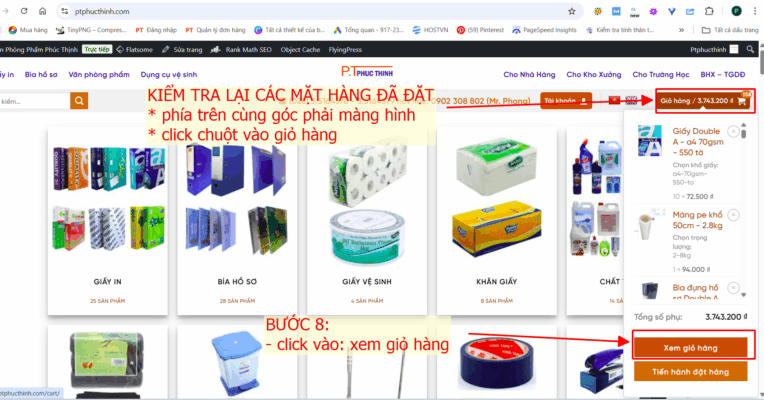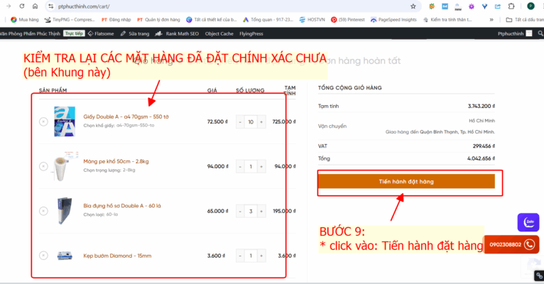 BƯỚC 8: Kiểm tra lại tất cả các sản phẩm đã đặt (xem hình bên dưới)