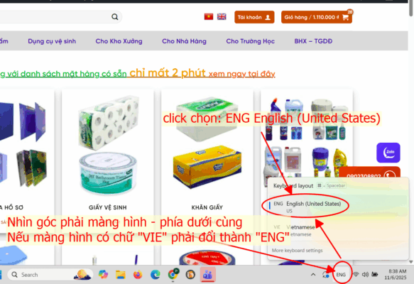 Lưu ý cực kỳ quan trọng: góc phải màng hình phía dưới cùng: CHỌN ĐÚNG ENG English (United States) (xem hình bên dưới)