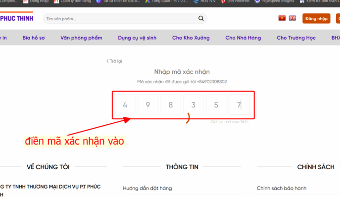 Bước 4: Nhập mã xác nhận vào khung bên dưới (lưu ý mã xác nhận này tồn tại chỉ 90 giây)