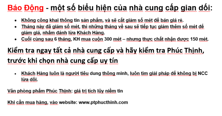 Không để ý kỹ, mõi tháng NCC gian dối sẽ cắt giảm số mét dần dần để bán giá rẻ, cuối cùng là…