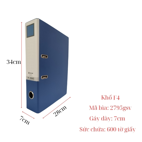 - Kích thước gáy 7cm: Phù hợp với nhu cầu lưu trữ hồ sơ thông thường.