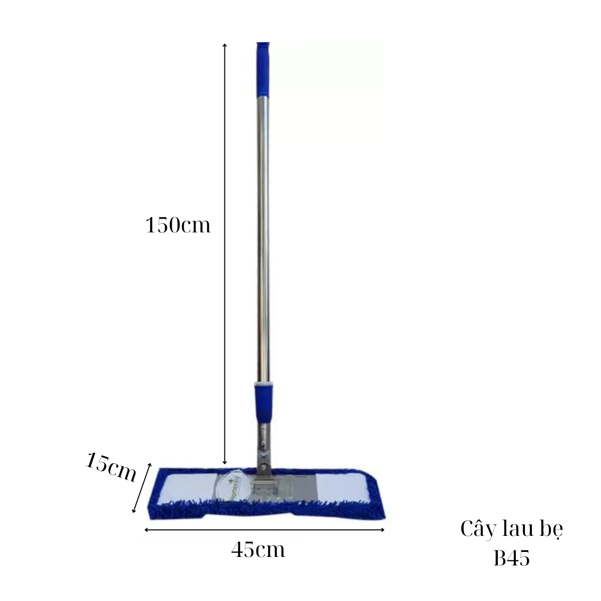 - Vẫn đảm bảo hiệu quả làm sạch: Mặc dù kích thước nhỏ hơn, nhưng các loại cây lau nhà công nghiệp 45cm tại Phúc Thịnh vẫn được trang bị đầu lau chất lượng cao, đảm bảo khả năng thu gom bụi bẩn và làm sạch vết bẩn hiệu quả.