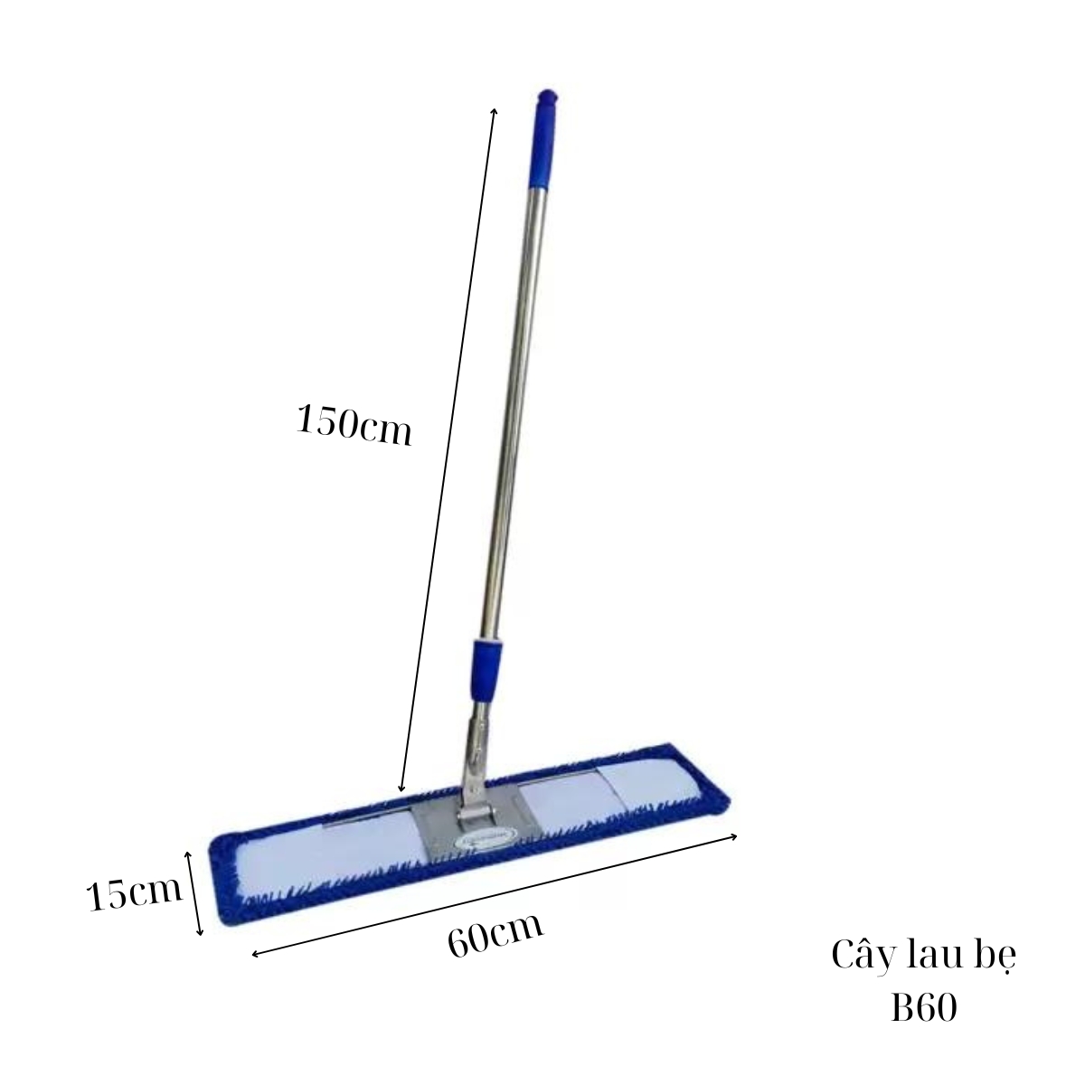 - Hiệu quả làm sạch tối ưu: Kích thước 60 cm cho phép bao phủ một diện tích bề mặt đáng kể trong mỗi lần lau, giúp bạn hoàn thành công việc vệ sinh nhanh chóng và hiệu quả. Đầu lau được làm từ các sợi microfiber hoặc cotton cao cấp, có khả năng thấm hút tốt và loại bỏ bụi bẩn, vết bẩn cứng đầu một cách dễ dàng trên nhiều loại sàn.