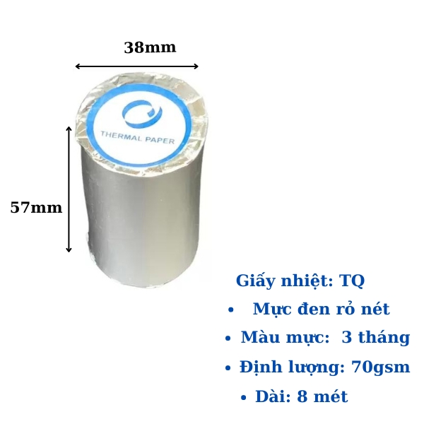 - Giấy in nhiệt K57 38mm: Loại giấy này có đường kính cuộn giấy 38mm, phù hợp với các máy in hóa đơn nhiệt nhỏ gọn.