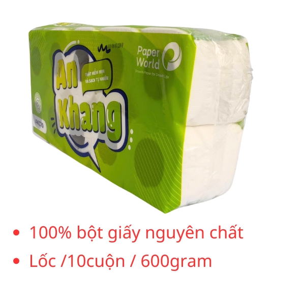 - Giấy vệ sinh An Khang 10 cuộn: Quy cách đóng gói 10 cuộn giúp người dùng tiết kiệm thời gian mua sắm và đảm bảo nguồn cung cấp giấy vệ sinh ổn định trong một khoảng thời gian.