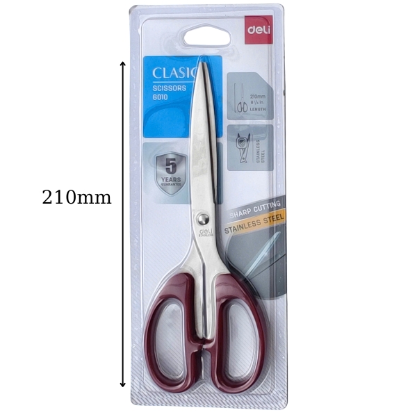 - Kéo Deli 6010: Kéo văn phòng với lưỡi dao dài, giúp cắt các vật liệu dày hơn.