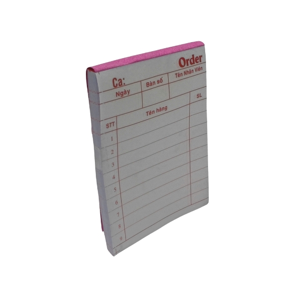 - Giấy order 1 liên: Loại giấy này được in 1 lớp, phù hợp cho những nơi có nhu cầu giữ lại thông tin order 1 bản.